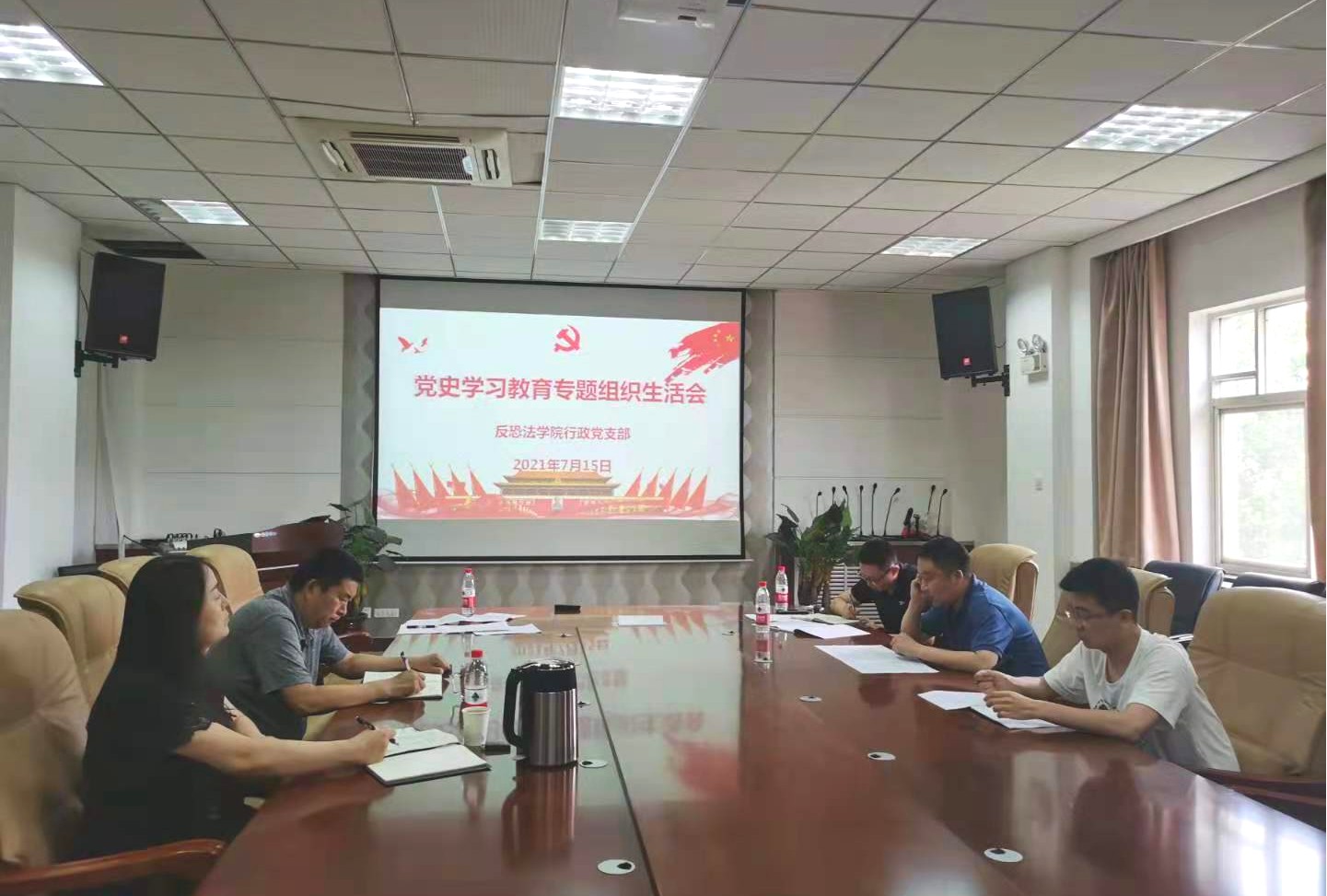 7月15日下午,反恐法学院行政党支部全体同志在学院会议室召开了党史教育学习专题组织生活会,会议由党支部书记谭莉莉主持。学院党委书记李政敏作为联系支部的学院班子成员同时也作为支部普通党员参加了会议,学校党史学习教育第二巡视督导组盖青青老师列席了会议。