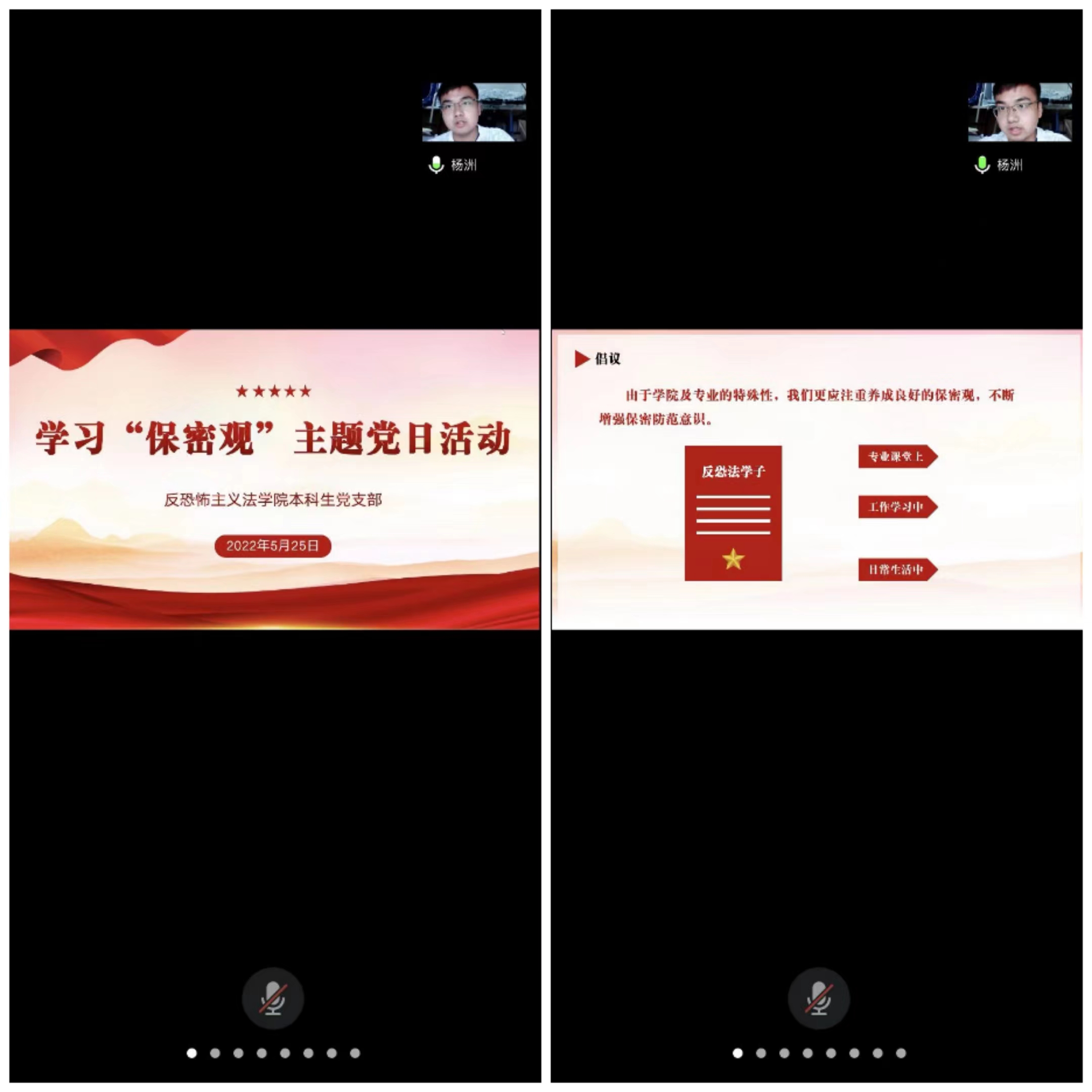 为认真贯彻落实新时代保密工作要求,进一步增强党员学生保密意识、保密能力,筑牢安全思想防线,5月25日,成人网站 本科生党支部通过腾讯会议组织开展学习“保密观”主题党日活动。活动由党支部成员杨洲主持,全体本科生党支部成员参加。