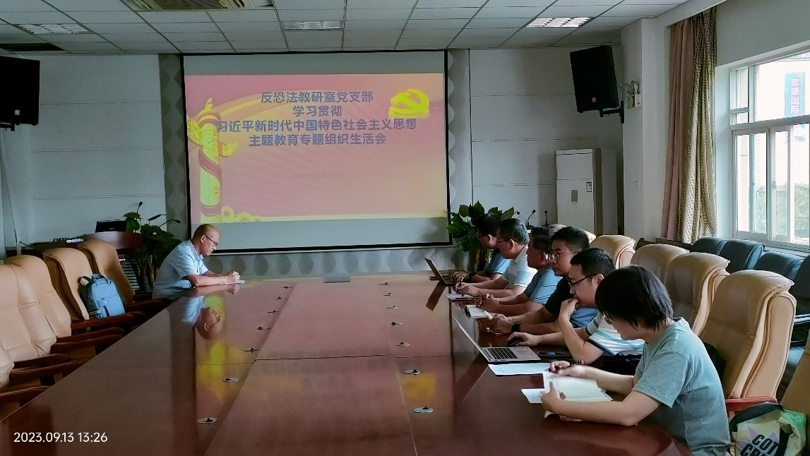 9月13日,成人网站 反恐怖主义法教研室党支部在学院会议室召开学习贯彻习近平新时代中国特色社会主义思想主题教育专题组织生活会,支部党员孙立江、乔巴生、齐立峰、刘伟、段阳伟、马瑜参加会议。会议由支部书记张波主持。