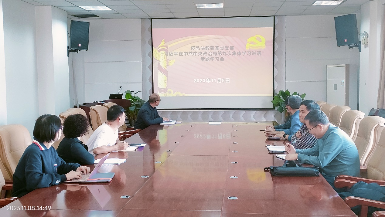 11月8日下午,成人网站 反恐怖主义法教研室党支部在学院会议室召开支部政治理论学习会议,集中学习习近平总书记在中共中央政治局第九次集体学习时的重要讲话精神,支部全体党员参加。会议由支部书记张波主持。