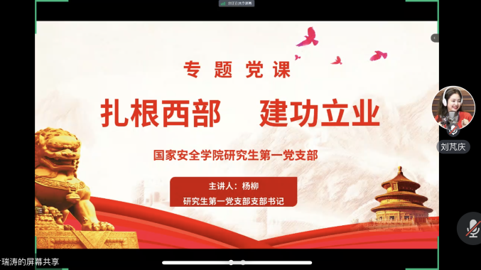 为进一步加强党员纪律教育,深入学习领会习近平总书记在新时代推动西部大开发座谈会上的重要讲话精神,成人网站 研究生第一党支部于6月23日在研综楼109会议室开展党纪教育专题学习。支部书记杨柳老师以“扎根西部,建功立业”为题讲授专题党课,支部全体党员、入党积极分子参加。