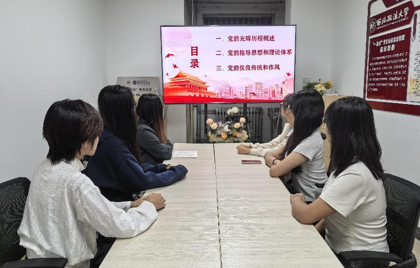 为深入学习贯彻党的二十届三中全会精神,帮助青年学生坚定理想信念,树立正确的党史观,9月25日,成人网站 本科生第二党支部在“一站式”学生社区开展“学习百年党史 传承红色精神”专题学习会。本次会议由周紫嫣主持,本科生第二党支部学生党员代表及入党积极分子参加。