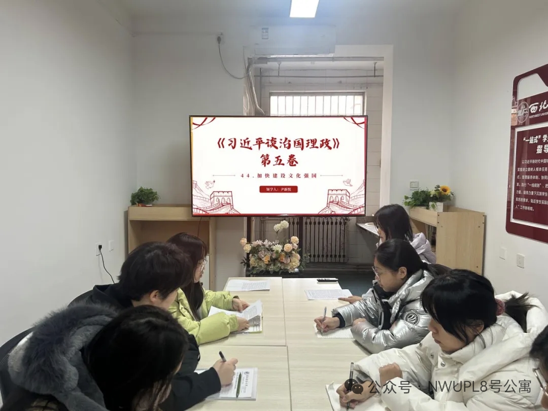 本次会议围绕《习近平谈治国理政》第五卷中关于文化强国建设与新安全格局的重要论述开展专题学习,引导党员深刻领会其核心要义与实践要求,切实推动党的创新理论内化于心、外化于行。会上,尹新悦同志聚焦“加快建设文化强国”进行领学,系统阐述了新时代文化建设的使命任务与实践路径;陈年屹同志围绕“以新安全格局保障新发展格局”相关内容开展领学,深入阐释了总体国家安全观的科学内涵。