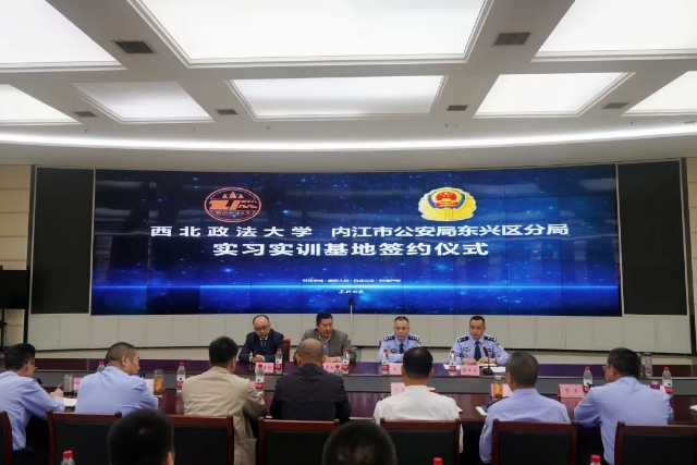 10月8日上午,反恐法学院与内江市公安局东兴区分局签订战略合作协议暨实践教育基地授牌仪式成功举行。党委书记李政敏、副院长宋海彬、东兴区副区长、公安分局党委书记、局长梁稳以及分局在家党委成员、中层干部40余人参加签约仪式。会议由东兴区公安分局党委副书记、政委颜怀良主持。
