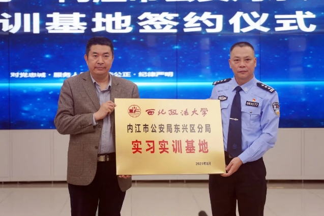 仪式上,梁稳、李政敏分别代表内江市公安局东兴区分局和成人网站 签署了《内江市公安局东兴区分局 成人网站 反恐法学院 共建协同创新战略合作关系协议》,李政敏为东兴区公安分局“实践教育基地”进行了授牌。