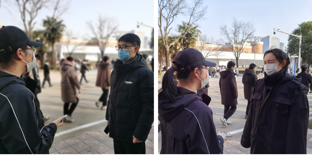侯颖怡:是的,我也第一时间加入了志愿者团队。主要是在核酸检测时维护秩序,也幸运的做了次大白,协助医护人员核酸采样时做登记工作。第一感触就是医护人员太辛苦了,他们都是各地抽调的医护人员,有的做完核酸还要回单位继续上班。最近天气比较冷,他们每做完一个都要用酒精消毒洗手,我戴上一次性医用手套后才深切感受到每洗一次手都是刺骨的冰凉。而且他们大都是站着采样,5、6个小时下来腰酸背痛,脚都失去了知觉。我是在教师公寓区帮忙,很多老人做完都会说辛苦了,孩子们也天真的围着我们跑来跑去,每当看到这一幕我们又都会感到所有的辛苦都是值得的!只是太遗憾最近教工志愿者越来越多,每次一项任务来了大家都争先恐后,一呼百应,我也很久没有领到任务,更是抢不到大白了(笑)。