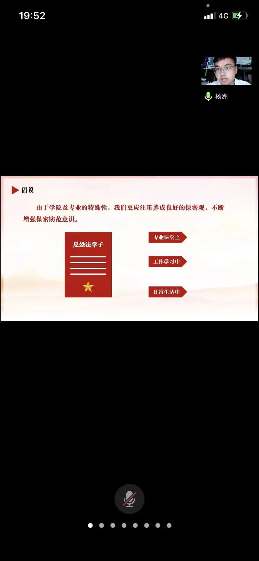为认真贯彻落实新时代保密工作要求,进一步增强党员学生保密意识、保密能力,筑牢安全思想防线,5月25日,成人网站 本科生党支部通过腾讯会议组织开展学习“保密观”主题党日活动。活动由党支部成员杨洲主讲,全体本科生党支部成员参加。