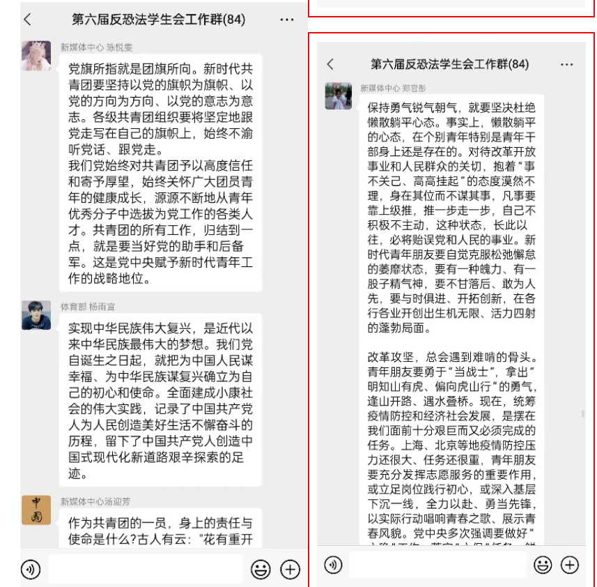 通过学习习近平总书记给中国航天科技集团空间站建造青年团队、南京大学的留学归国青年学者回信,同学们更加清晰地认识到青年承担新时代重任的战略地位,深刻理解当代青年与新时代同向同行、与实现第二个百年奋斗目标宏阔征程完整契合,并纷纷发言表示要树立家国情怀,立志接续奋斗、永久奋斗,努力成为实现中华民族伟大复兴的先锋力量。