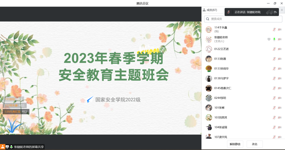 接下来张婕妮老师详细传达了学校关于2023年春季学期学生返校的各项工作安排,并对大家提出的问题作出详细解答。