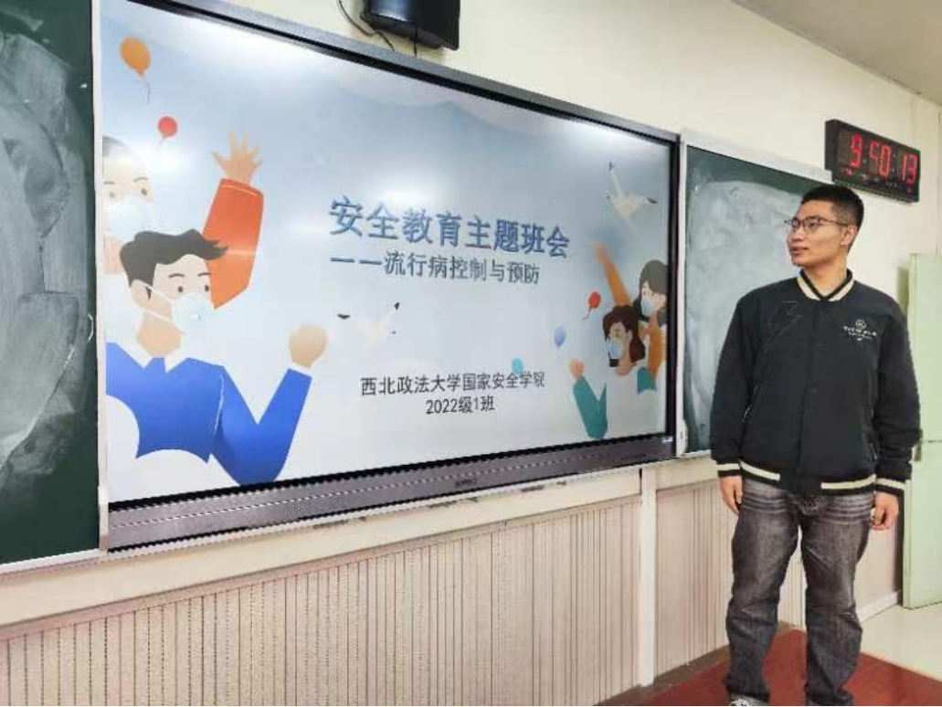 为增强学生的医疗防护意识,普及预防甲型流感的知识,倡导健康的生活方式,2023年3月19日上午,成人网站 22级1班开展了"流行病控制与预防"的安全教育主题班会,班会由班长刘具其同学主持。
