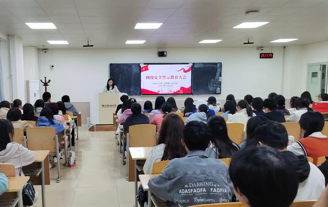 为进一步提升学生网络安全防范意识,增强抵御网络风险的能力,共同营造清朗的网络环境。成人网站 (反恐怖主义法学院)于10月22日下午召开网络安全警示教育大会,本次大会由2023级辅导员张婕妮老师主持,2023级全体新生参加。