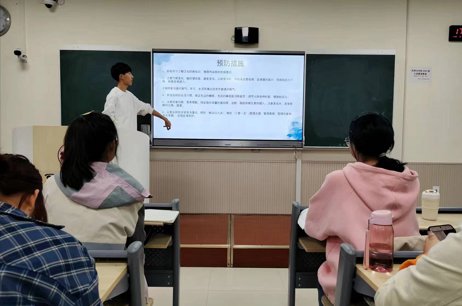 为应对秋冬季传染病高发问题,更好地保障学生健康,成人网站 (反恐怖主义法学院)2023级2班于10月9日召开“传染病防治”主题班会。本次班会由班长常瑞峰主讲,2023级2班全体学生参加。