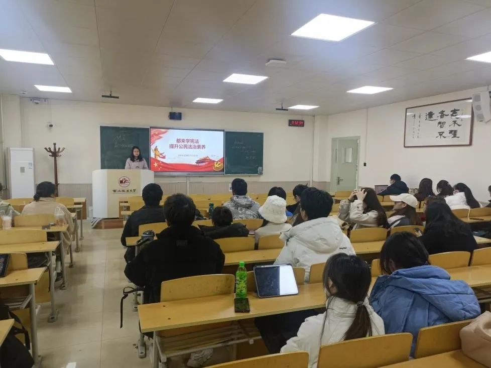 各班班会从宪法的由来、宪法的地位、宪法的核心内容、宪法的重要性、依法维权和公民的宪法权利等多方面向同学们介绍了宪法的理论知识,其中着重向同学们阐释了学习宪法对大学生砥砺前行、立志成才的重要意义,并呼吁同学们认真学习宪法,大力弘扬社会主义法治精神,努力传承中华优秀传统法律文化,让宪法信仰根植于每个人内心深处。