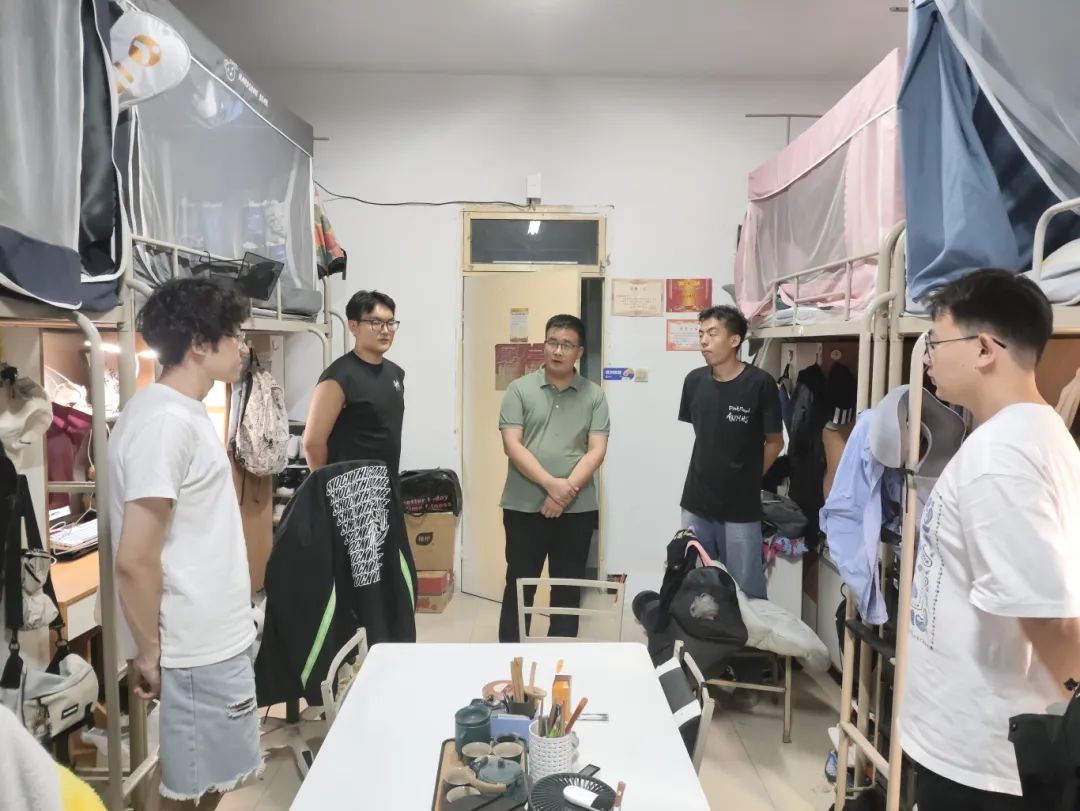 为深入了解学生生活状态,保证良好住宿环境,成人网站 党委副书记刘卫波老师、辅导员王真老师以及生活心理部成员于8月29日开展宿舍走访工作。