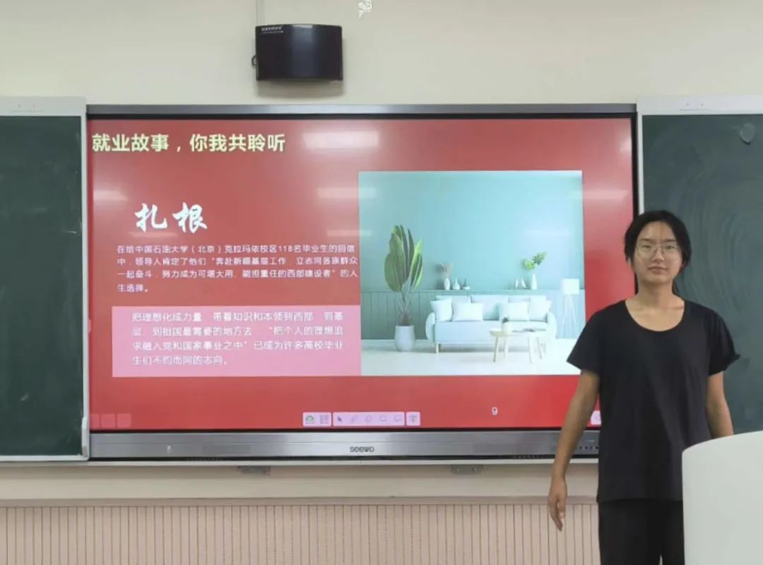 2023级3班团支书幸佳颖同学通过分享团中央“就业领航计划”,引领大学生把人生追求融入到祖国、人民和时代的需要之中,为服务国家和人民贡献力量。