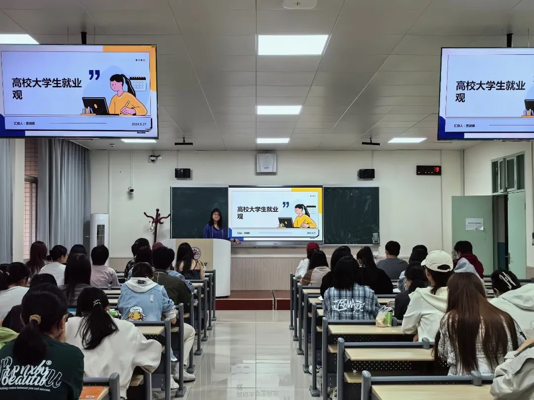 为帮助新生提早明确职业规划,锚定奋斗目标,树立正确的就业观,9月27日,成人网站 (反恐怖主义法学院)在格物楼305教室召开“高校大学生就业观”主题宣讲会。本次会议由董婧媛同学主讲,2024级全体同学参加。
