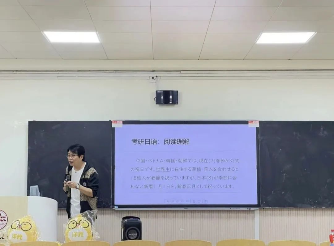 刘峰在宣讲中将小语种与当代潮流相结合,吸引同学们的学习兴趣。同时,将部分第二外国语和英语做对比,介绍了英语和日语、法语、德语、俄语等小语种的考研实况,强调小语种与法学结合的复合型人才的急缺性,从职业规划的角度说明了学习第二外国语的重要性。