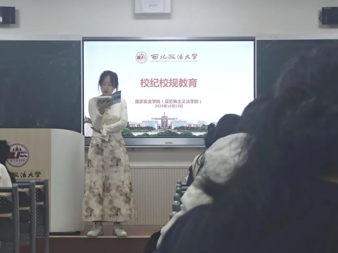 为帮助2024级本预科生更好了解学校政策,端正学习态度,提高纪律意识,成人网站 (反恐怖主义法学院)于10月13日在2号教学楼305教室进行了校规校纪教育宣讲,本次活动由2024级辅导员王真老师担任主讲,2024级全体本预科生同学参加。