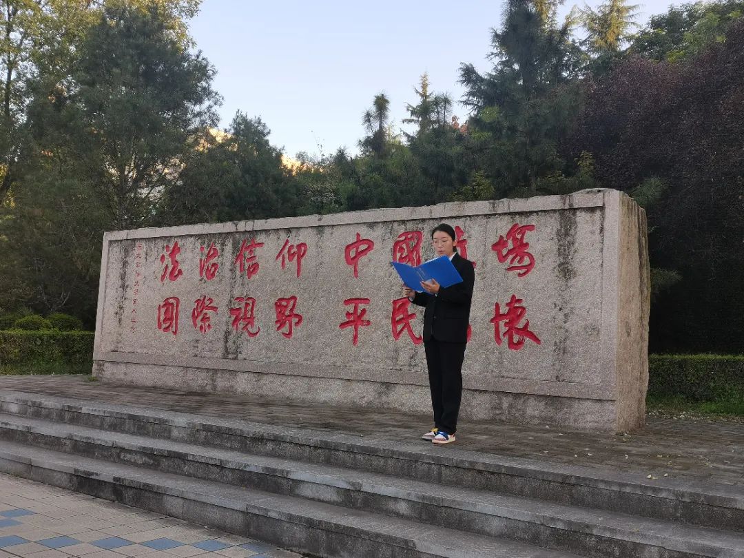在育人理念石前,宣讲员为同学们深刻阐述了“法治信仰、中国立场、国际视野、平民情怀”的育人理念内涵。这一理念旨在培养具有坚定法治信念、深厚家国情怀、广阔国际视野和深厚人文关怀的新时代优秀人才。愿同学们积极践行这一理念,不断提升自己的综合素质和能力水平。
