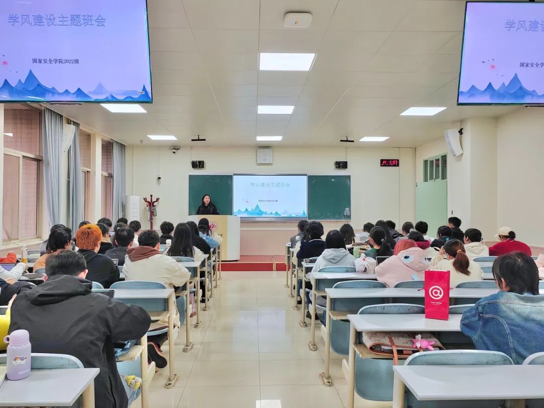为营造积极向上、严谨求实的学习氛围,构建文明校园,成人网站 (反恐怖主义法学院)2022级本科生于11月14日召开学风建设主题班会。本次班会由辅导员张婕妮主持,2022级全体学生参与。