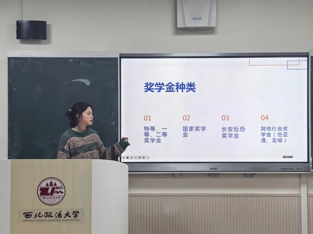 为提高2024级本预科生同学学习热情,更好规划未来学习生活,进一步了解各类奖项,成人网站 (反恐怖主义法学院)于11月24日在格物楼305教室召开优秀学子分享会。本次会议由2024级辅导员王真老师主持,2022级沈楚楚同学主讲,2024级全体同学参加。