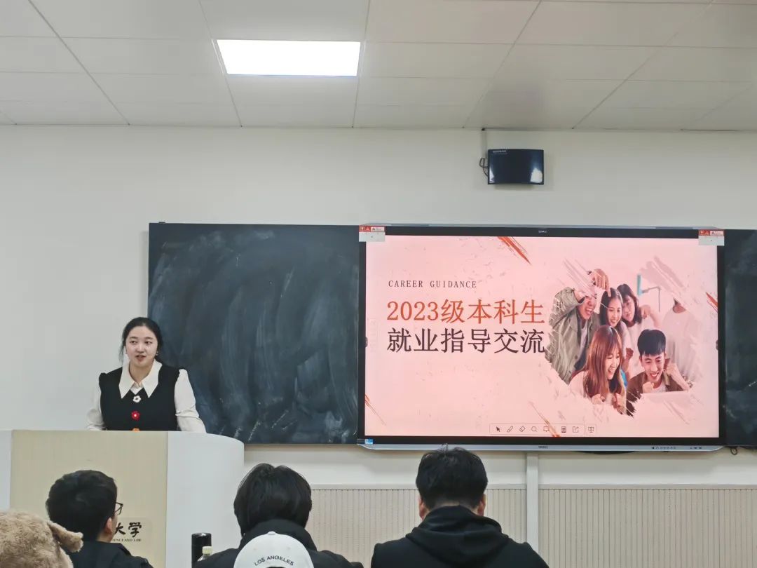 为帮助学生更好地做好职业规划,引导学生树立合理的就业期望、提升就业竞争力,成人网站 (反恐怖主义法学院)于12月15日在B307召开了2023级本科生就业指导交流会。会议由辅导员张婕妮老师主持,2023级全体同学参加。