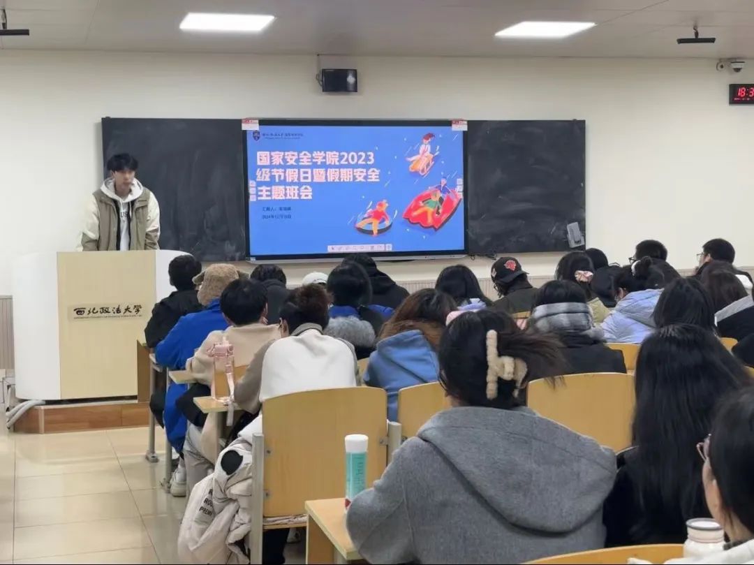 为提高学生假期安全防范意识,做好安全教育工作,近日,成人网站 (反恐怖主义法学院)各年级召开寒假安全教育主题大会。大会由辅导员王真老师、张婕妮老师主持,各年级安全委员主讲,各年级全体同学参加。