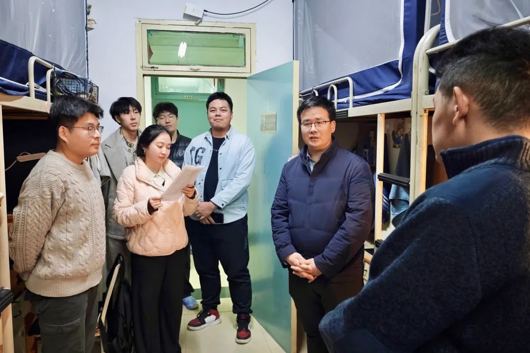 学院领导、老师对学生宿舍的环境卫生、消防安全隐患、违规用电行为及学生的思想动态、潜在矛盾纠纷、困难诉求等方面展开全面了解与排查。走访期间,刘卫波老师与同学们热情交流,着重强调要提高安全意识,鼓励大家在新学期脚踏实地、积极进取,增强纪律观念,培养良好的行为习惯。