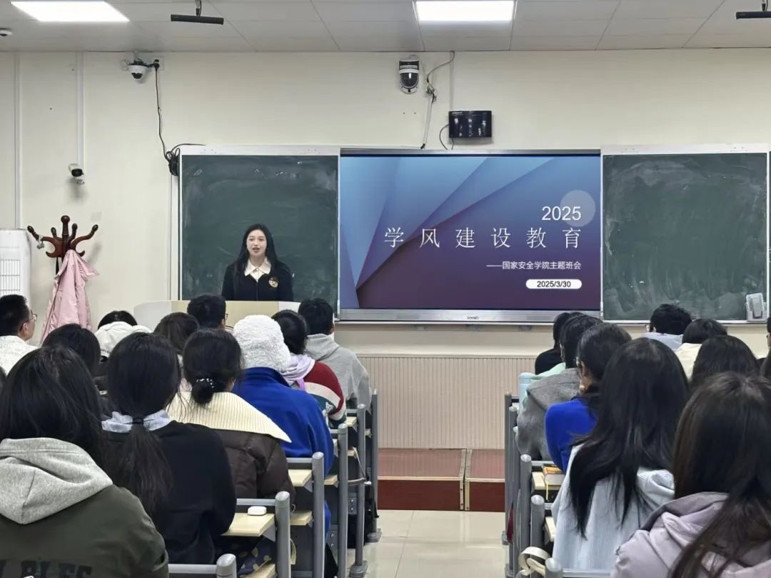 为持续深化学风建设,营造勤学笃行、自律进取的成长氛围,成人网站 (反恐怖主义法学院)2023级于3月30日召开了学风建设动员会暨学生行为规范主题班会。本次班会由2023级辅导员张婕妮老师主持,2023级全体本科生参加。