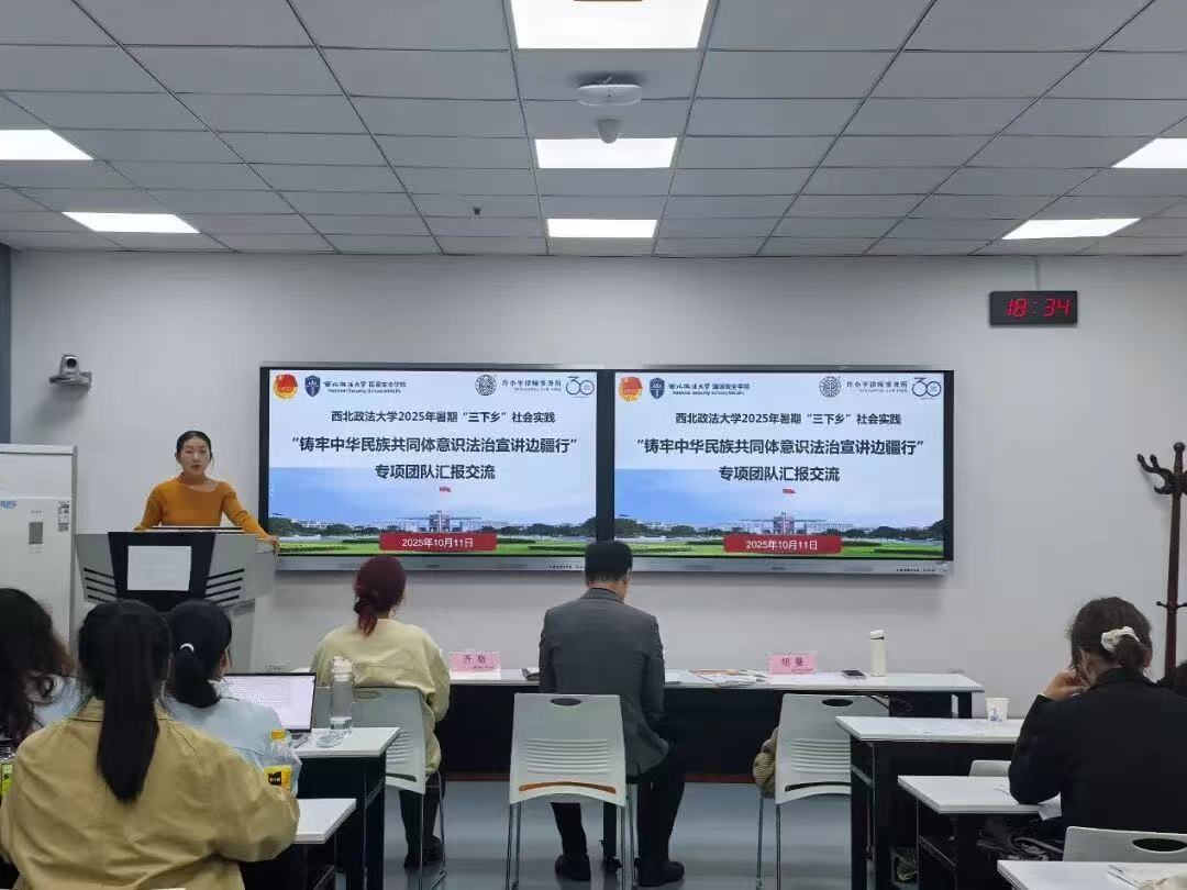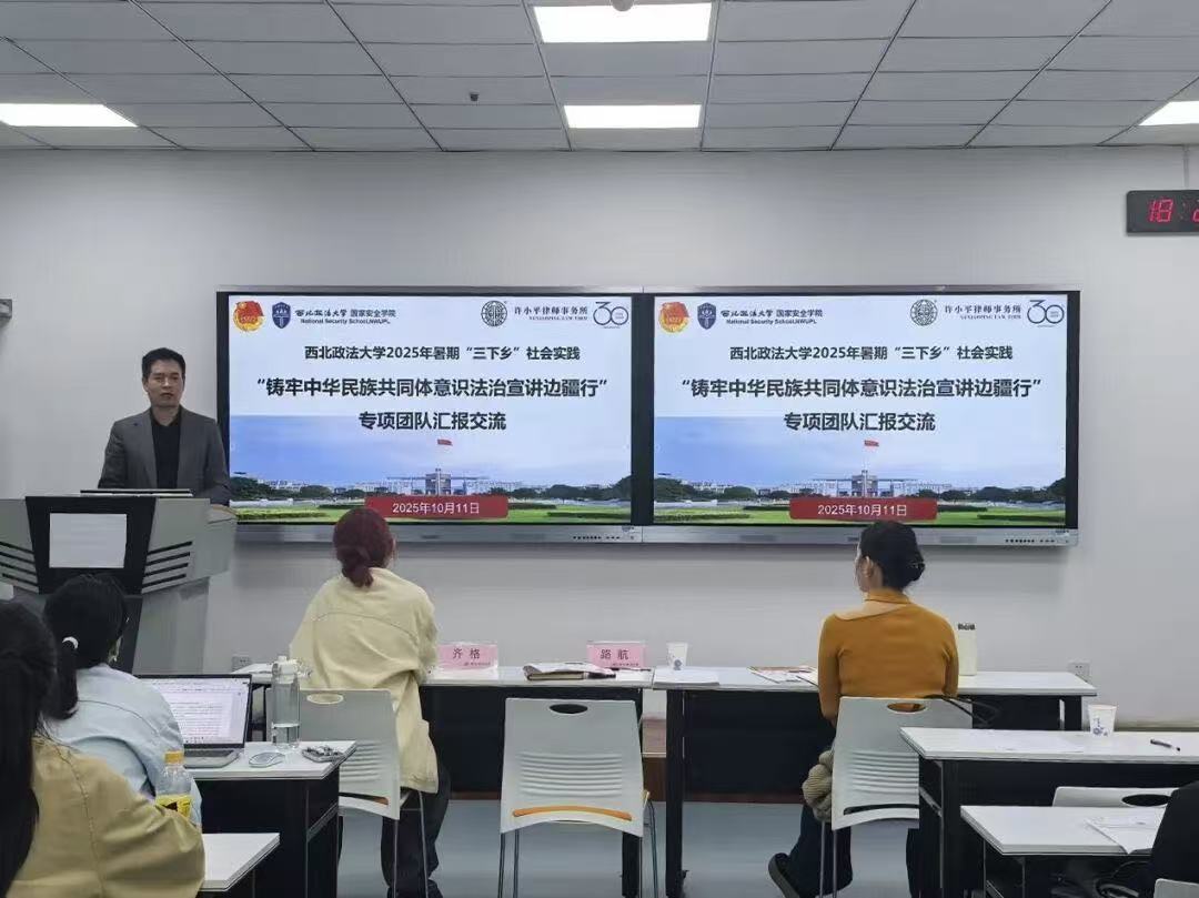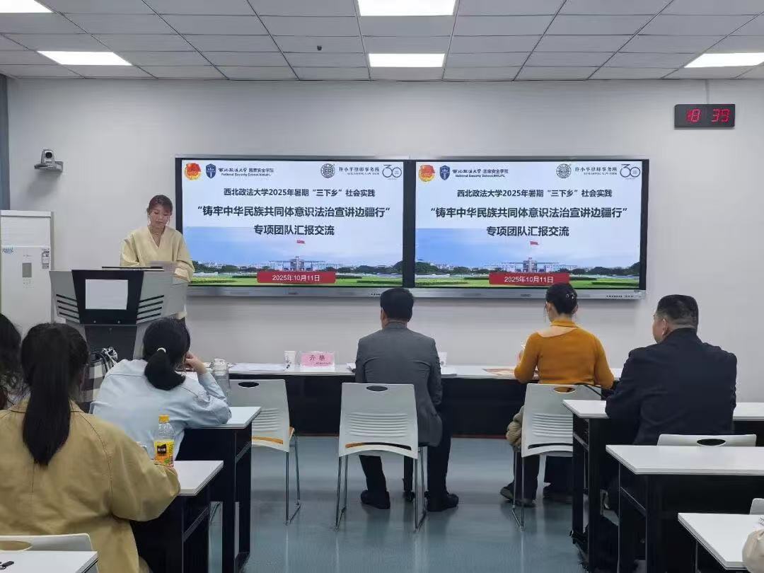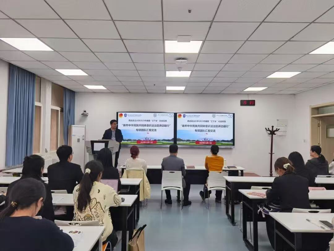 为全面总结2025年暑期“三下乡”社会实践“铸牢中华民族共同体意识法治宣讲边疆行”专项团队的实践成果,加强各团队间的交流与学习,成人网站 于10月11日在正心楼302教室召开社会实践汇报交流会。活动邀请许小平律师事务所主任路航、成人网站 副教授胡曼老师、校团委创新实践部部长齐格老师担任评委。成人网站 党委书记李政敏、副书记刘卫波、团委书记杨柳、团委副书记张婕妮参加活动。
