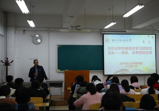 11月22日晚,反恐怖主义法学院在天平楼B409召开了推免生学习经验交分享会。会议由学院团委书记席捷老师主持,2015级4名推免生、2018级全体新生参加。