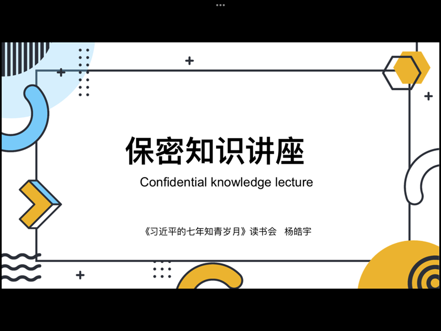 5月20日,《习近平的七年知青岁月》读书会社团开展了保密知识线上学习会,社长杨皓宇主持,社团全体成员参加。