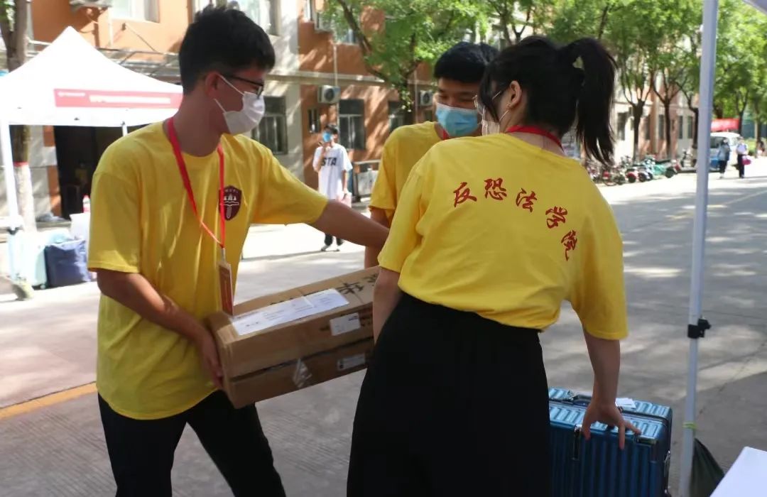 “小火车”到达行李存放点时,行李存放点的学长学姐们从“小火车”上搬运新生们的行李,在新生们到达摊位指认行李后,帮助新生将行李搬运至宿舍楼,站好迎新工作的最后一道岗。