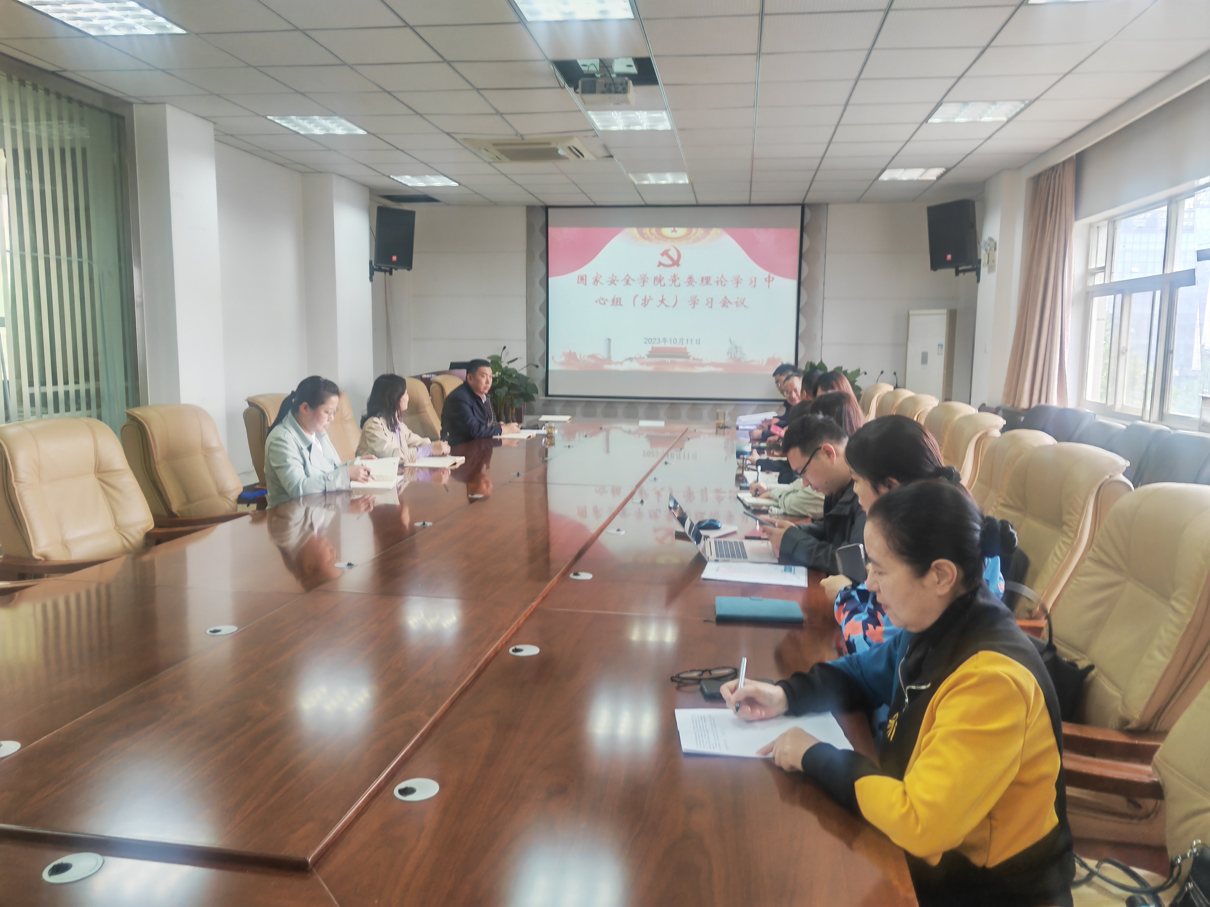 10月11日,成人网站 党委理论学习中心组(扩大)在学院会议室召开集体学习会议。院党委理论学习中心组成员、教研室主任、支部书记、科级干部参加会议。会议由党委书记李政敏主持。