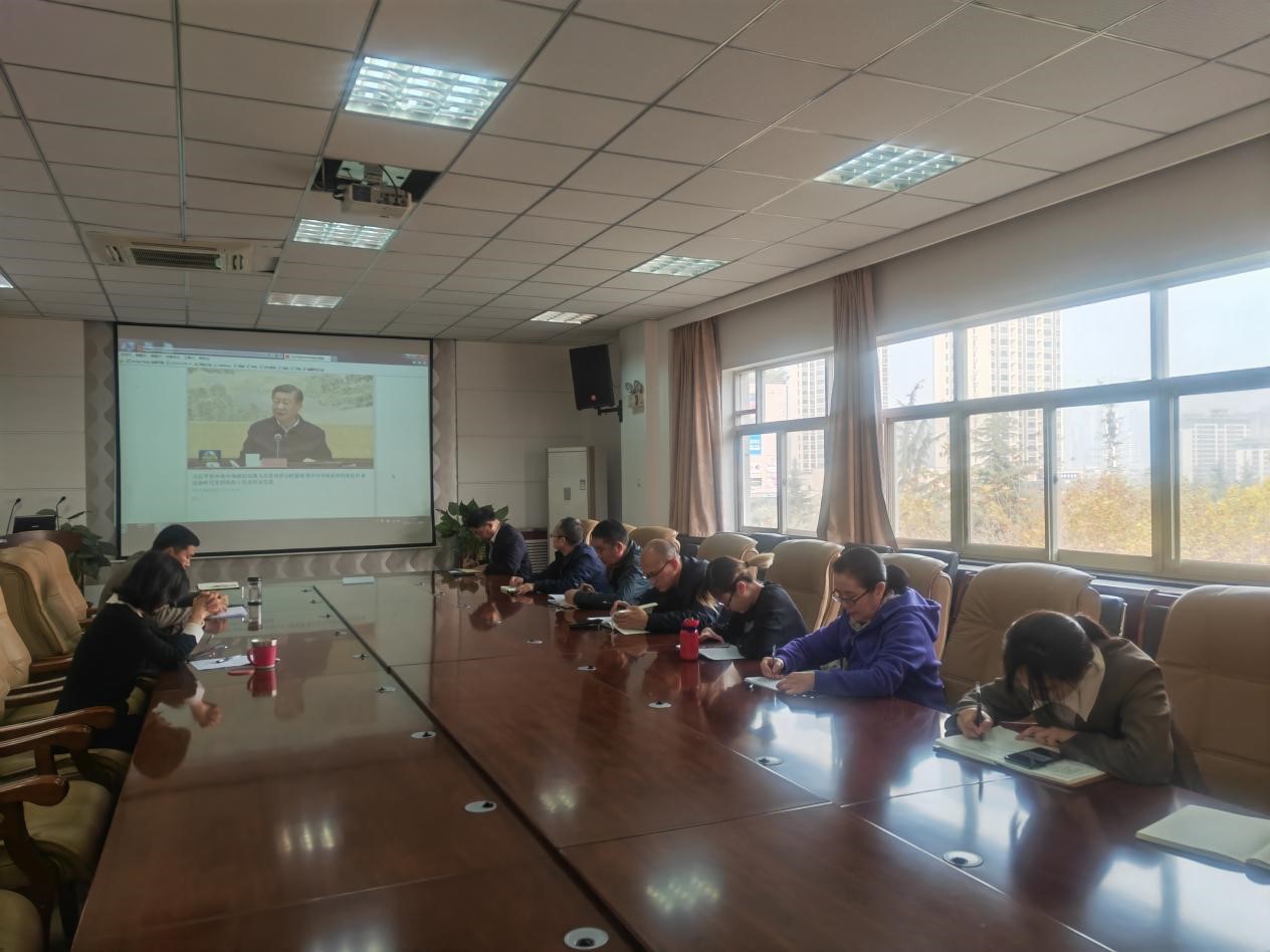 11月21日,成人网站 党委理论学习中心组(扩大)召开学习会议, 学习习近平总书记近期重要讲话精神。理论学习中心组成员、党支部书记、院长助理、科级干部参加会议。会议由院党委书记李政敏主持。