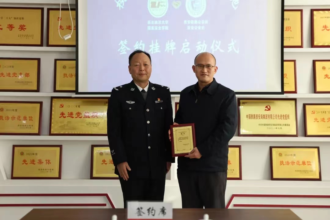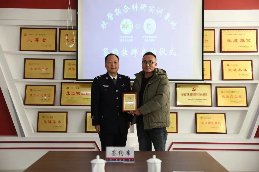 1月2日下午,成人网站 党委书记李政敏,党委副书记、院长舒洪水,党委副书记刘卫波及成人网站 教师一行赴西安铁路公安局西安公安处,共同举办“校警联合科研实训基地”揭幕挂牌仪式。西安铁路公安局西安公安处党委书记、处长田野,党委委员、纪委书记王军胜,党委委员、副处长王海涛及相关部门负责人参加仪式。