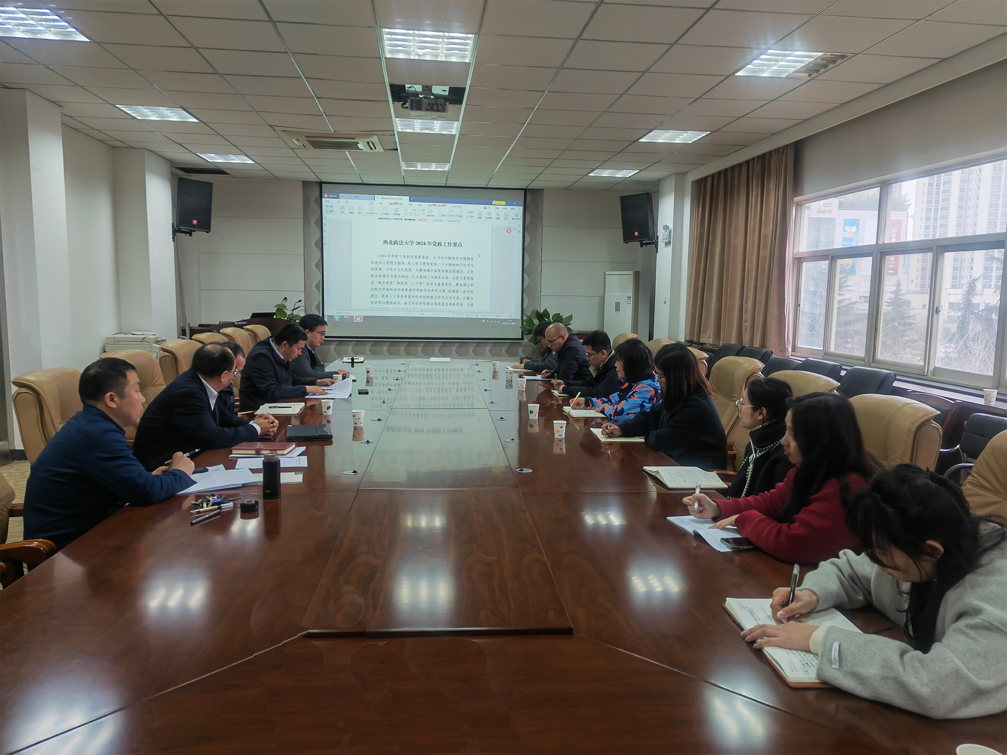 会议强调,要认真学习领会习近平总书记重要讲话精神,坚持用党的创新理论武装头脑,指导实践,教育引导全院师生干部深刻领悟“两个确立”的决定性意义,坚决做到“两个维护”;要把学习宣传贯彻习近平总书记重要讲话与习近平法治思想,习近平文化思想,习近平总书记关于民族工作、宗教工作、总体国家安全观等重要论述紧密结合起来,与提升学院教育教学、学科建设、科研创新、人才培养质量等实际工作结合起来,学深悟透、以学促干,助力学院事业高质量发展;要贯彻落实校党委、校纪委各项工作的决策部署,对标对表《成人网站 2024年党政工作要点》,坚持问题导向,细化工作举措,强调责任到人,逐条逐项抓好落实,确保学院全年各项重点工作任务保质保量按时完成。