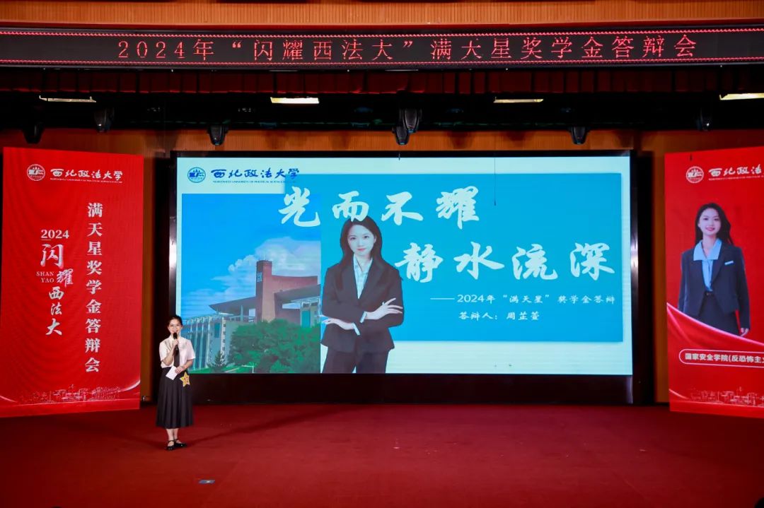 5月29日下午,2024年度“闪耀西法大”满天星奖学金答辩会在成人网站 长安校区满天星学术报告厅举行,成人网站 (反恐怖主义法学院) 2020级本科生周芷萱参加答辩会,荣获2024年满天星奖学金。