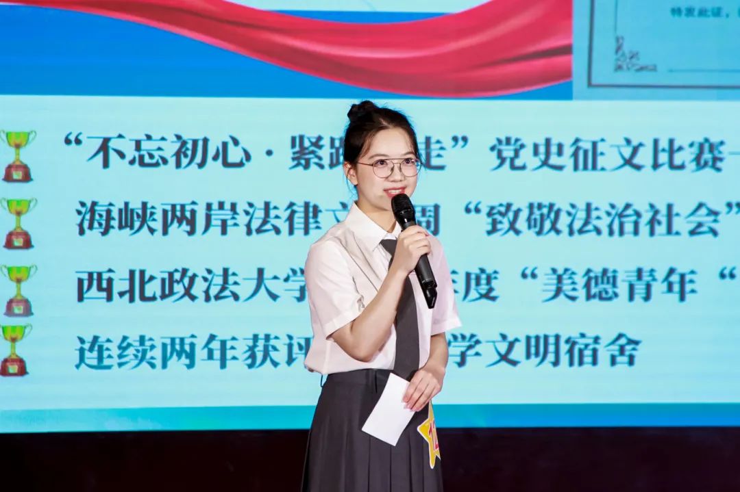 周芷萱同学以“光而不耀,静水流深”为主题,讲述了自己的法学探索之路。从稳扎稳打到厚积薄发,从兴趣使然到科研初探,周芷萱同学始终秉持严谨求实、潜精研思的治学态度。法律课程学习、学术编辑和创新实践经验促使她坚定信仰、赤诚奉献;课题研究、专业实习与丰富赛事经历使她实现德智体美劳全面发展。在风雨锤炼中,周芷萱坚守最初的法治信仰,积极迎接机遇,勇敢直面挑战,在激燃青春中前行,最终抵达名为“梦想”的彼岸。