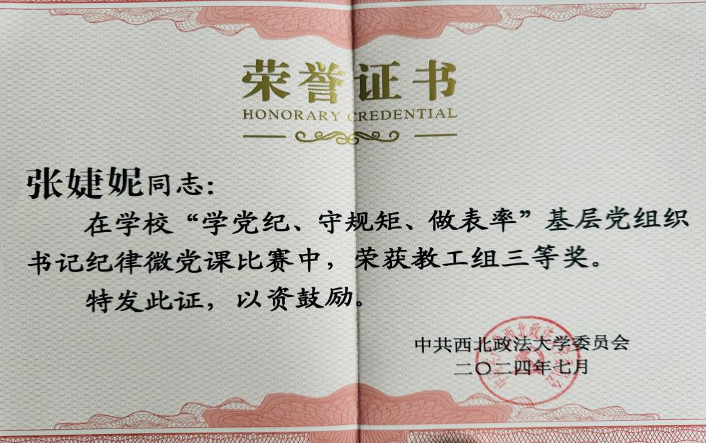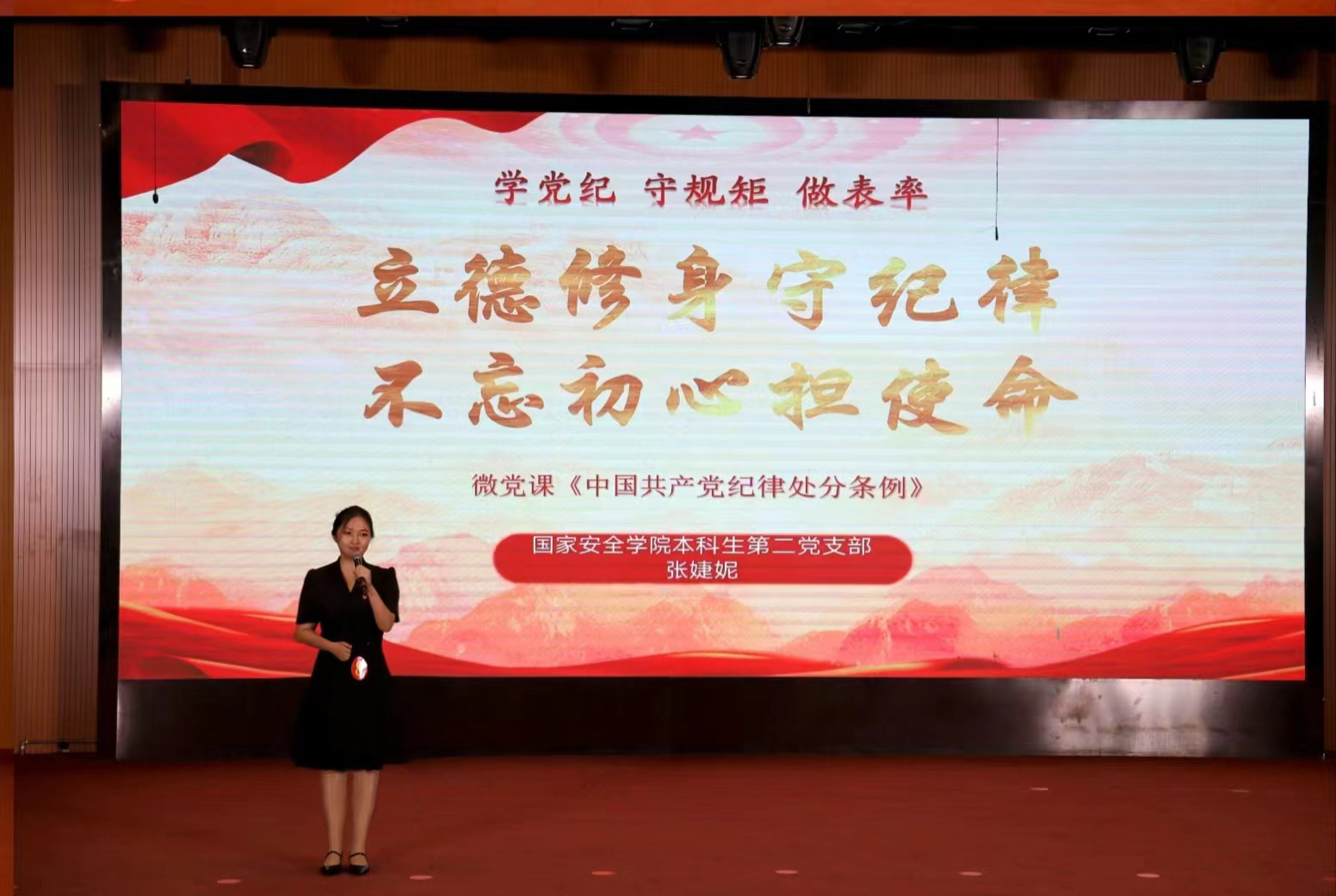 6月28日下午,成人网站 “学党纪、守规矩、做表率”基层党组织书记纪律微党课决赛于长安校区满天星报告厅隆重举行。成人网站 本科生第二党支部书记张婕妮在全校教工组初赛中脱颖而出,代表学院党委参加了决赛并荣获三等奖。
