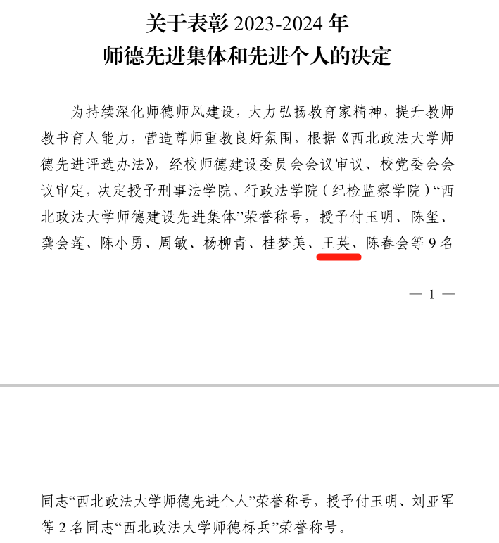 王英副教授荣获“成人网站 师德先进个人”称号,舒洪水教授、彭瑞花教授分别荣获陕西省哲学社会科学优秀成果奖。