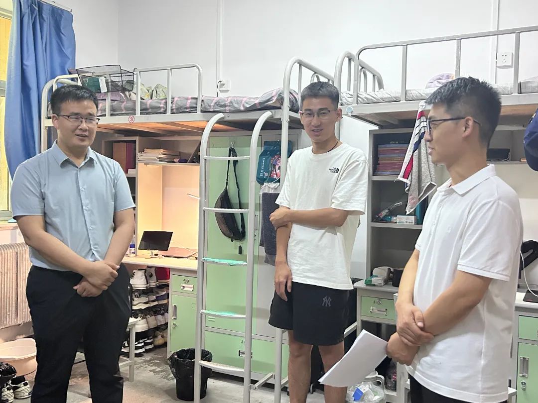 迎新工作结束后,刘卫波与研究生辅导员杨柳前往新生宿舍,了解新生的住宿环境,了解学生的基本情况,耐心解答学生的疑惑问题。刘卫波特别强调了宿舍安全的重要性,并叮嘱新生要养成良好的学习和生活习惯,尽快适应研究生阶段的学习生活,顺利开启人生的新阶段。