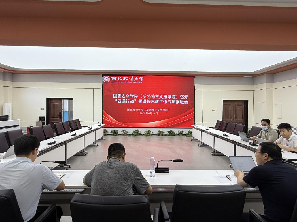 为进一步强化“三风”,提高“三率”,持续提升思政课课堂教学质量,成人网站 (反恐怖主义法学院)于6月11日在可视化中心召开 “四课行动” 暨课程思政工作专项推进会。学院党委书记李政敏、党委副书记、副院长刘卫波、院长助理段阳伟、中华民族共同体教研室主任王英、教务秘书秦哲及部分新进教师参加本次会议。会议由院长助理段阳伟主持。