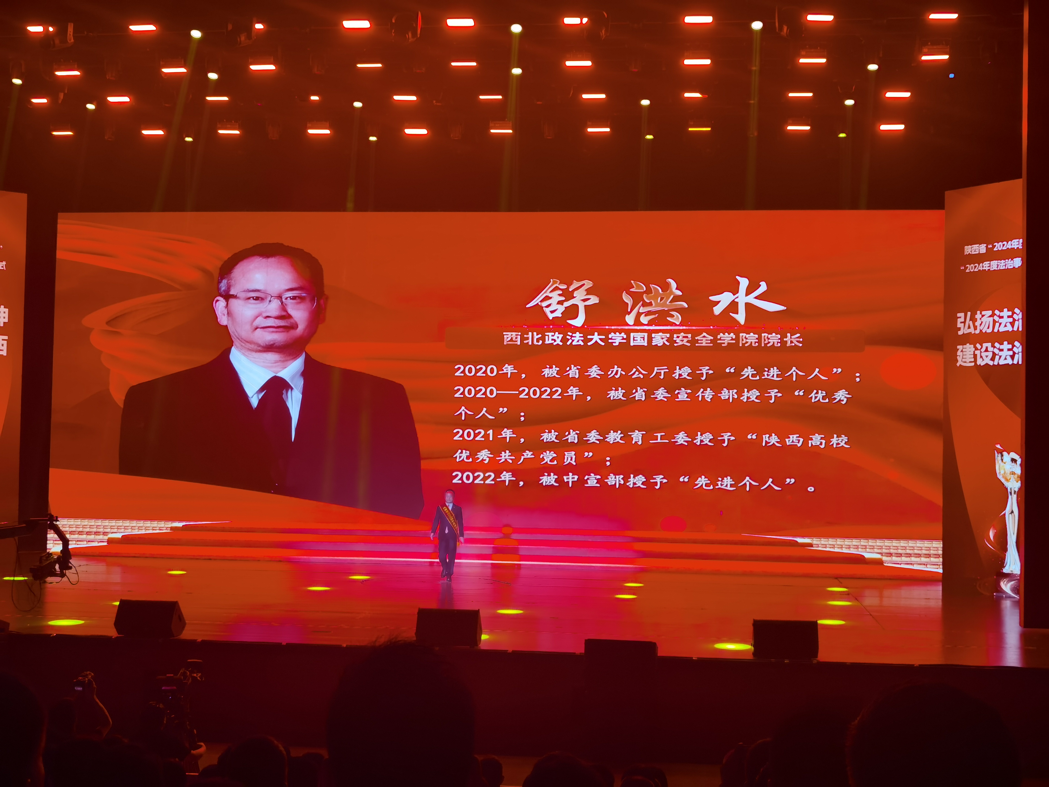7月3日,由省委依法治省办举办的陕西省“2024年度法治人物”暨“2024年度法治事件”发布仪式在西安举行。省委常委、省委政法委书记刘强出席仪式并为获奖代表颁奖。成人网站 院长、二级教授、博士生导师舒洪水荣获陕西省“2024年度法治人物”称号。校党委副书记张军政参加发布仪式。