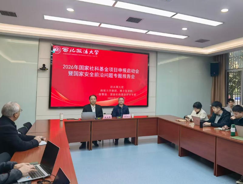 舒洪水传达了学校科研项目申报工作推进会的会议精神,从时间节点和保障措施等方面,对学院2026年度国家社科基金申报工作进行了具体安排。赵永琛以自身丰富的科研项目评审经验,结合当前国际局势和反恐形势等前沿议题,对项目申报的具体方法与注意事项等进行了阐释和指导。