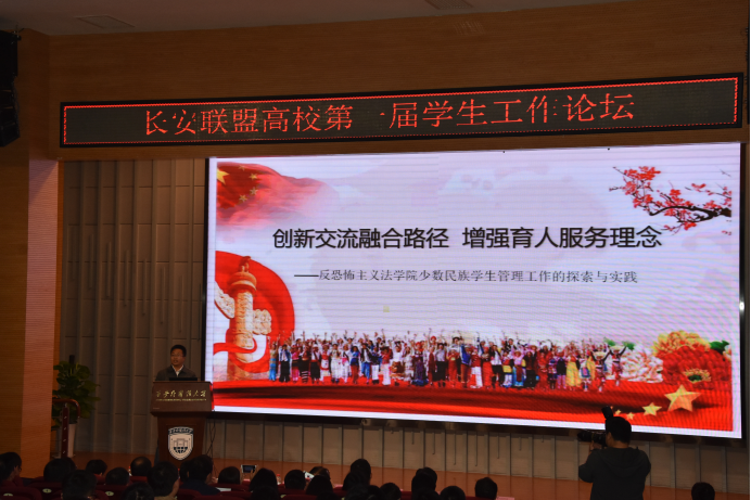 4月24日上午,长安联盟高校第一届学生工作论坛在西安外国语大学隆重举行。本次论坛以“深入学习习近平新时代中国特色社会主义思想,努力提升高校学生思想政治教育工作质量”为主题,分别邀请成人网站 、陕西师范大学、西北大学、西安邮电大学、西安财经学院、西安美术学院等校学工干部参加。成人网站 二十余名学工干部和辅导员参加此次论坛。