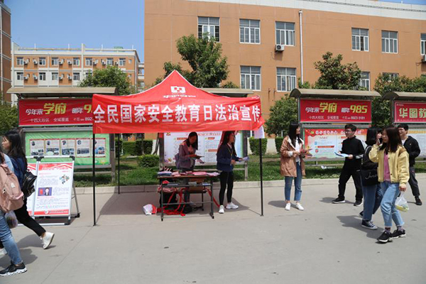 4月15日,反恐怖主义法学院与保卫处共同在长安校区利用宣传展板、手册、传单向校内师生宣传全民国家安全教育日。