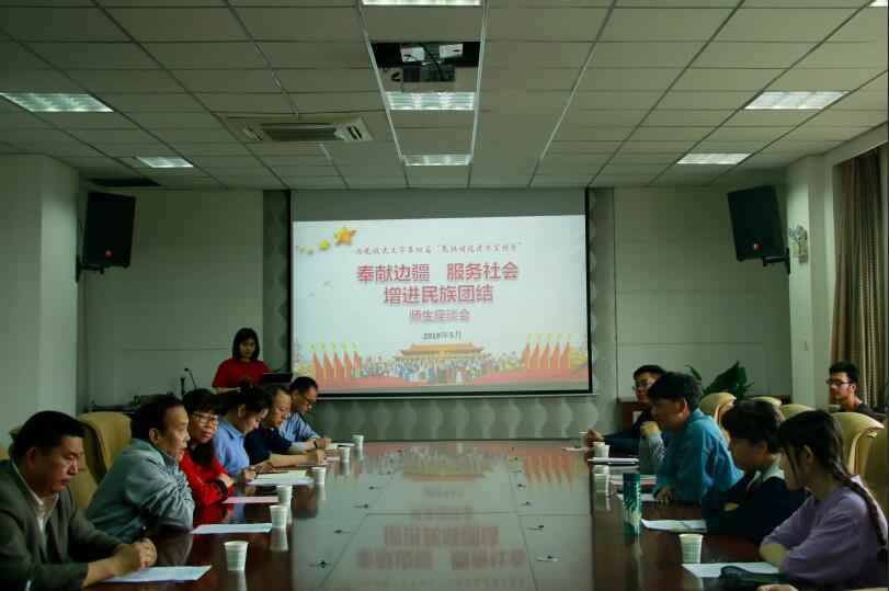 5月16日,反恐怖主义法学院召开“奉献边疆、服务社会、增进民族团结”师生座谈会。党委宣传部、学工部、校团委及反恐法学院负责同志、离退休处及少数民族师生代表30余人到场参加。