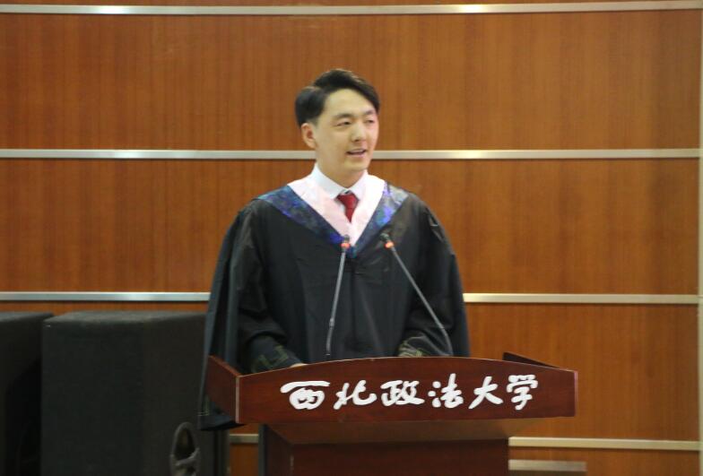 今天,我们在这里举办毕业典礼,不仅是庆贺毕业,更是新征程的开始。面对母校,我们要献上一颗感恩的心,祝福母校蒸蒸日上,桃李满天下。面对与我们共生共成长的学院和老师们,我们要感恩这四年来对我们的关心和教育,是你们的谆谆教诲,才让我们的大学没有虚度。是你们的鼓励,才让我们收获自信且敢于勇敢前行。我们会记得:在大学曾有幸遇到过一群可爱有趣的老师。既具备儒雅之气,又十分博学的宋海斌老师,让很多同学从此爱上了法理学;每年都会带领学生前往新疆调研的古丽娜儿老师,谢谢您让我们了解到其实新疆很美!是您向我们诠释了何为“学高为师,身正为范”;还有我们爱戴的兰迪老师,他用他一丝不苟的学术精神和乐观积极的生活态度影响着我们,等等。感谢每位老师,感谢你们的倾囊相授,在此,我衷心地祝愿各位老师,身体健康,工作顺意。