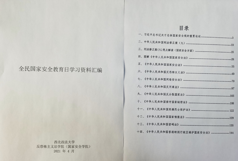 2021年4月15日是第六个全民国家安全教育日,为贯彻习近平总书记关于总体国家安全观的指示精神,落实陕西省教育工委关于组织开展2021年全民国家安全教育日宣传教育活动要求,反恐怖主义法学院(成人网站 )紧密围绕“践行总体国家安全观,统筹发展和安全,统筹传统安全和非传统安全,营造庆祝建党100周年良好氛围”这一主题提前筹划、制定方案,按计划有序开展系列宣传教育活动,切实增强师生维护国家安全的意识和能力。